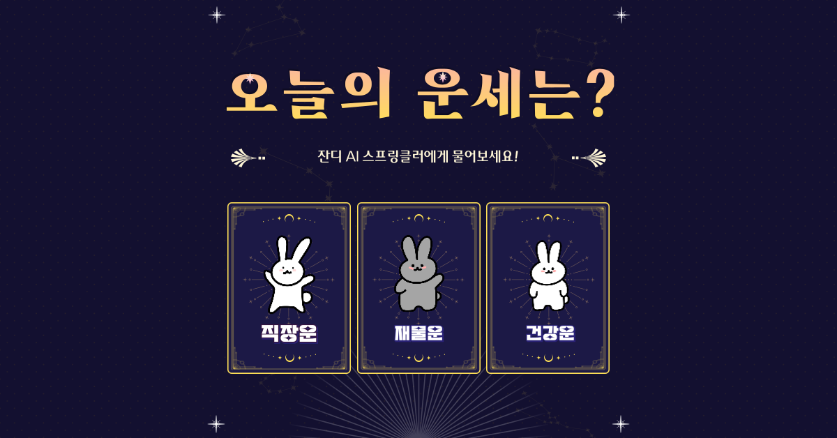 오늘의 운세는 잔디 왼쪽 상단의 '홈'에 진입 후 AI 입력창에서 활용하실 수 있습니다.