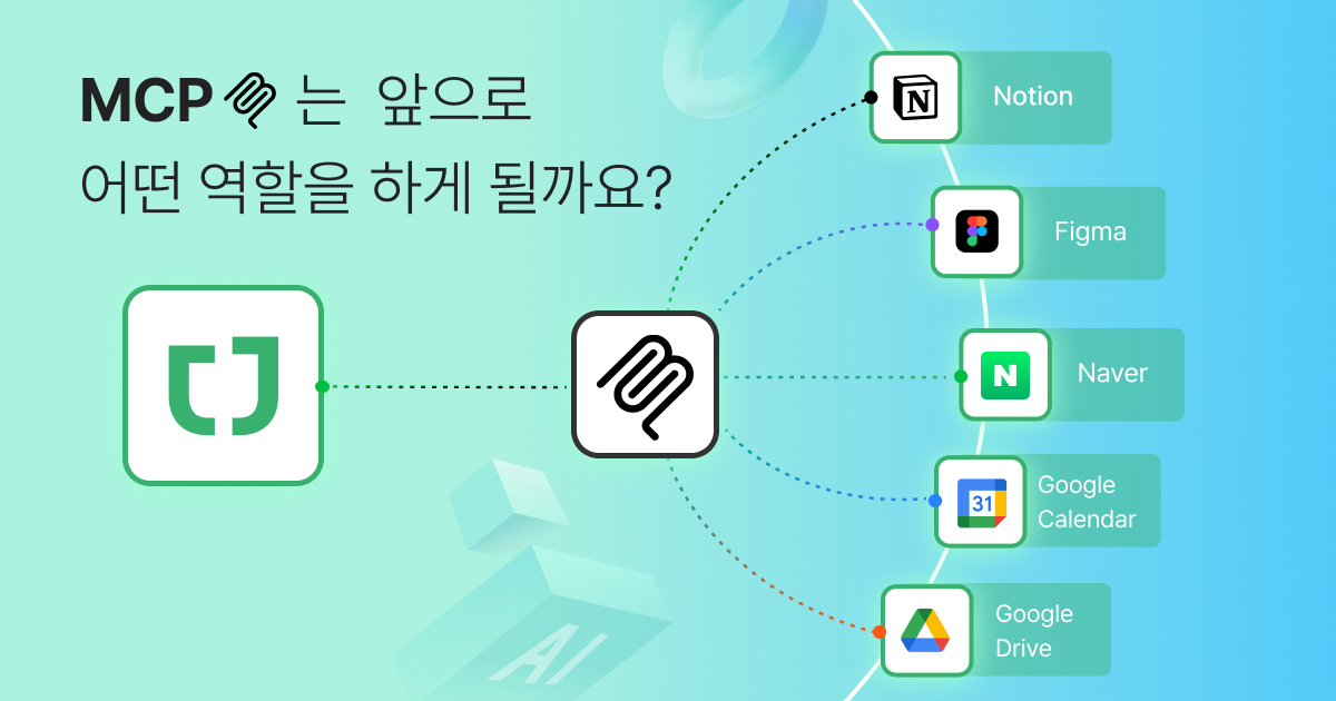 MCP 덕분에 복잡한 API 설정없이, MCP 표준 안에서 다양한 서비스를 AI에 연결할 수 있어요. 몇 단계만 설정하면 검색엔진은 물론 노션·구글 캘린더·드라이브까지 AI에 연결할 수 있습니다.