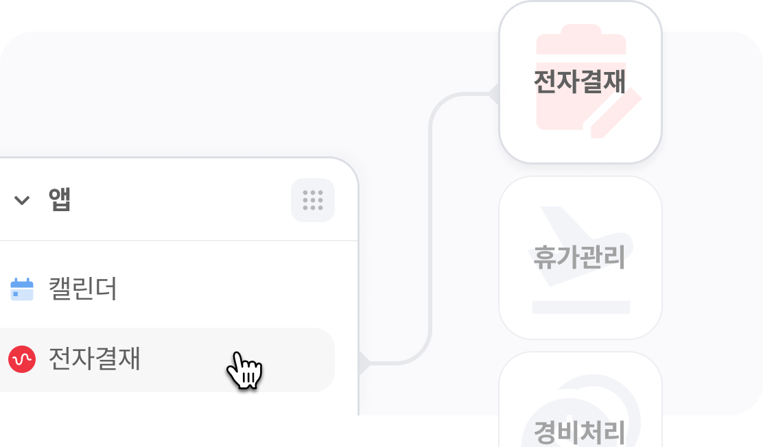 이제 메신저 기반 협업툴과 그룹웨어가 만나, 기업에 최적화된 업무 환경을 제공합니다. 전자결재, 출/퇴근 관리, 휴가 관리, 근로계약, 경비처리 그리고 이메일까지 잔디에서 함께 활용할 수 있어요.